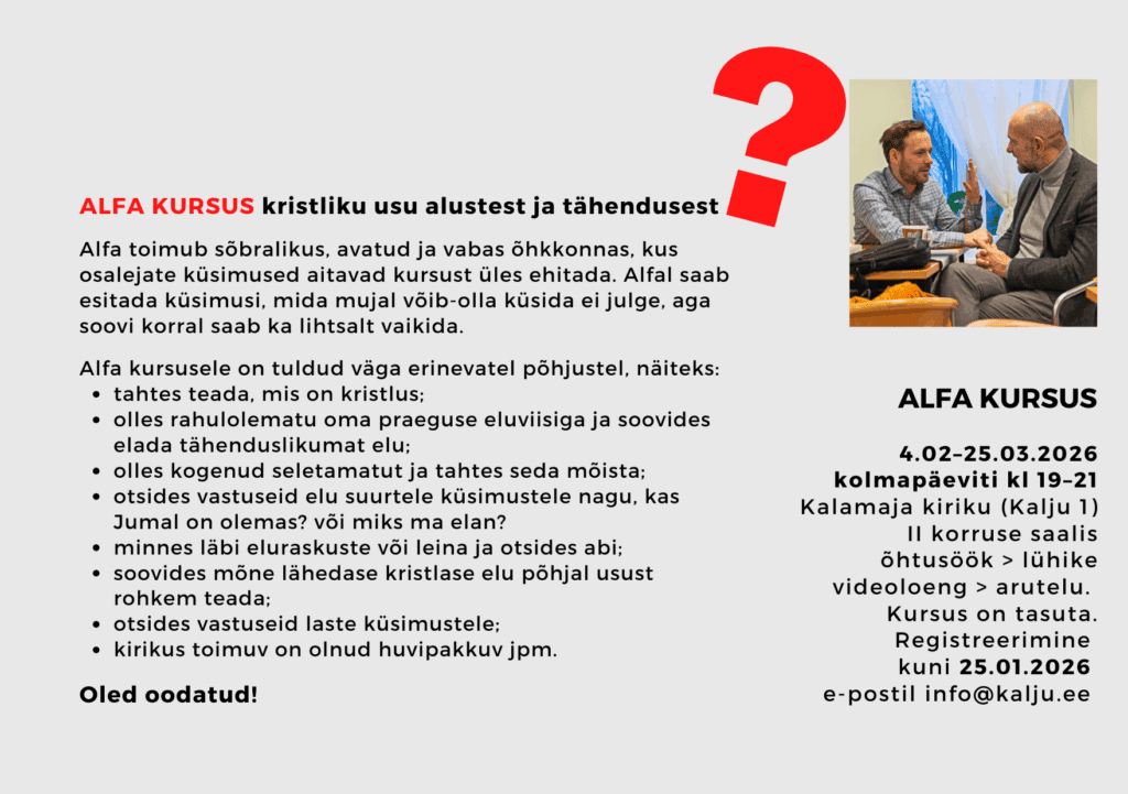 Alfa kursus on üle kogu maailma populaarseim kristluse põhitõdesid tutvustav kursus. Kursusel puudutatakse küsimusi: